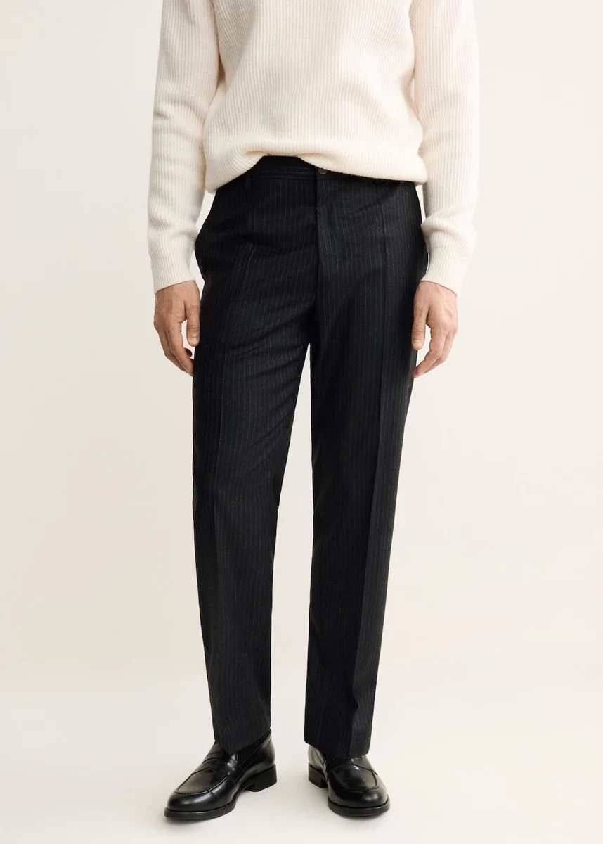 Tessuto 100% lana vergine. Vestibilità regolare. Design a righe. Dettaglio pinze anteriori e posteriori. Chiusura frontale con zip e bottone. Due tasche laterali. Due tasche a filetto con bottone sul retro. SELECTION: Una collezione di capi classici dalle linee minimaliste e dal design meticolosamente curato. Realizzati con tessuti di alta qualità per creare un guardaroba intramontabile ed elegante