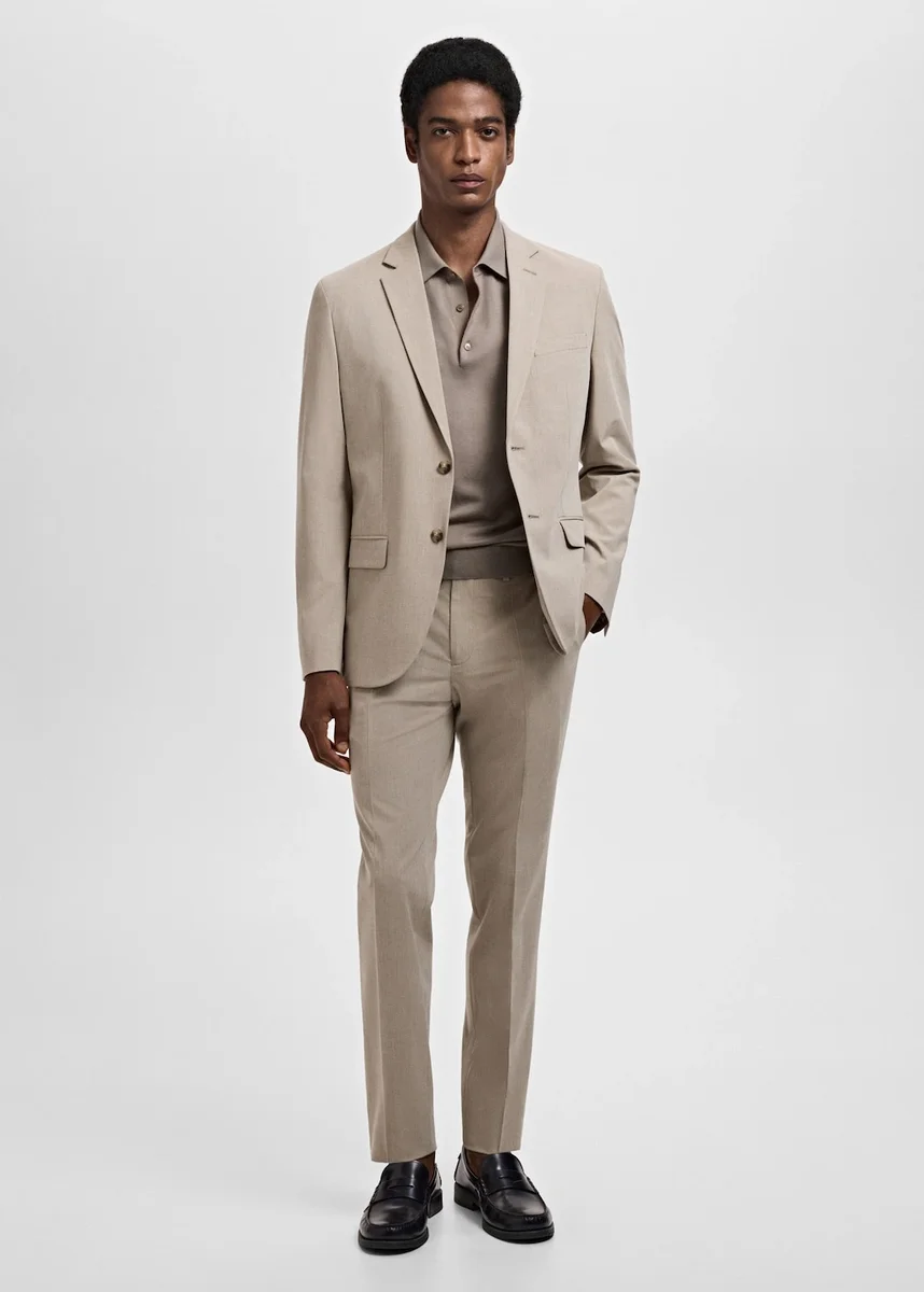 Vestibilità slim. Collezione sartoriale. Passanti per cintura. Chiusura frontale con bottoni doppiopetto e cerniera. Tasche laterali. Due tasche a filetto con bottone sul retro. Dettaglio a righe stirate sul davanti e sul retro