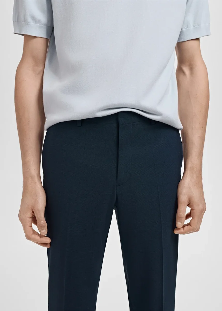 Vestibilità slim. Collezione sartoriale. Passanti per cintura. Chiusura frontale con bottoni doppiopetto e cerniera. Tasche laterali. Due tasche a filetto con bottone sul retro. Dettaglio a righe stirate sul davanti e sul retro.