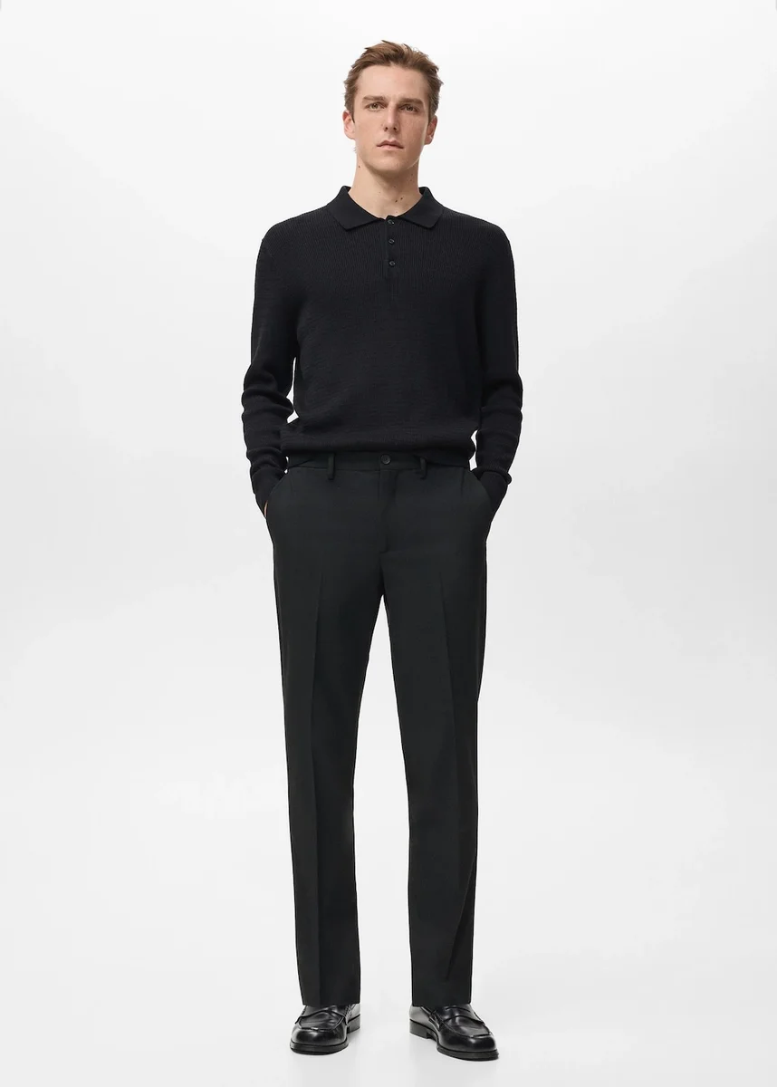 Vestibilità slim. Tessuto in cotone. Dettaglio a righe stirate sul davanti e sul retro. Due tasche laterali a filetto. Chiusura con doppio bottone. Due tasche a filetto sul retro. Passanti per cintura