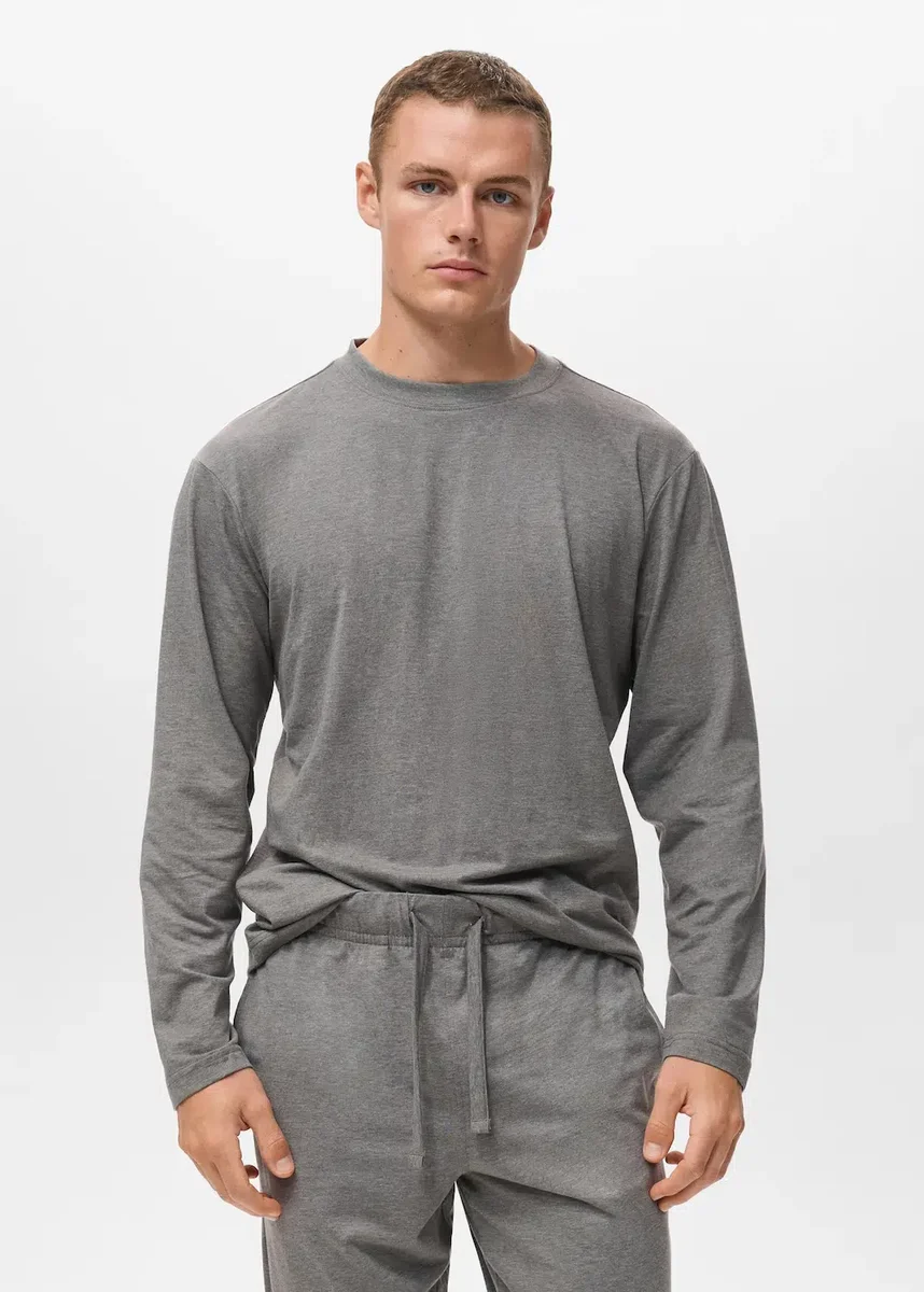 Tessuto misto cotone. Set composto da maglietta e pantaloni pigiama. Maglietta a maniche lunghe. Pantaloni con elastico in vita e coulisse regolabile. Include una borsa per riporre i capi. Black Friday
