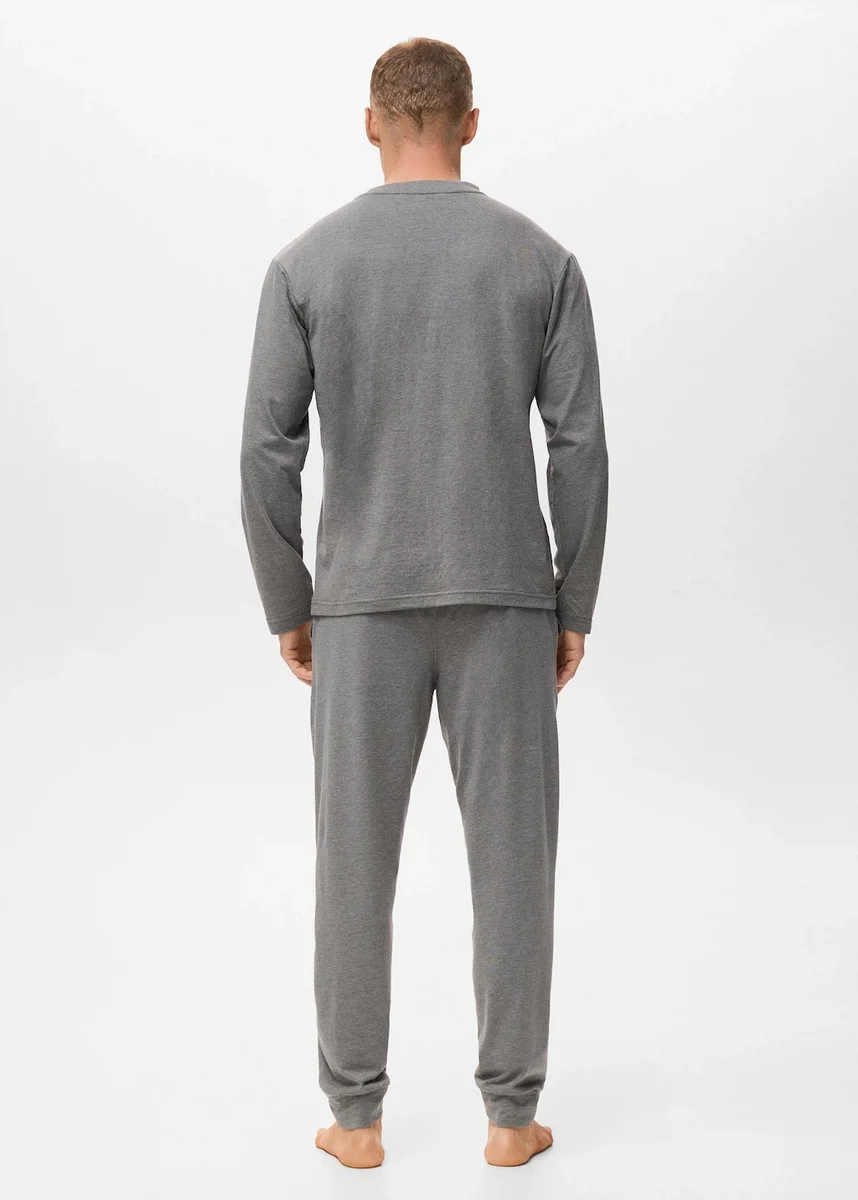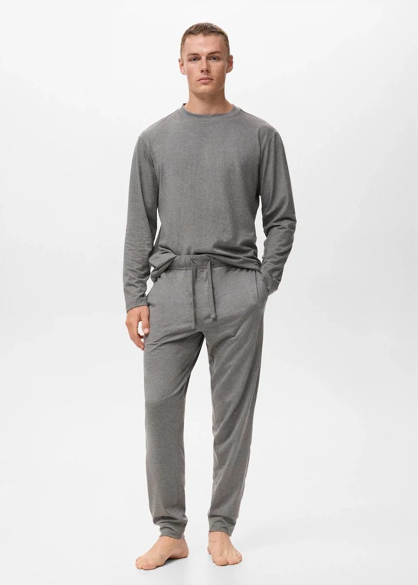 Tessuto misto cotone. Set composto da maglietta e pantaloni pigiama. Maglia a maniche lunghe. Pantaloni con elastico in vita e coulisse regolabile. Include una borsa per riporre i capi. Black Friday