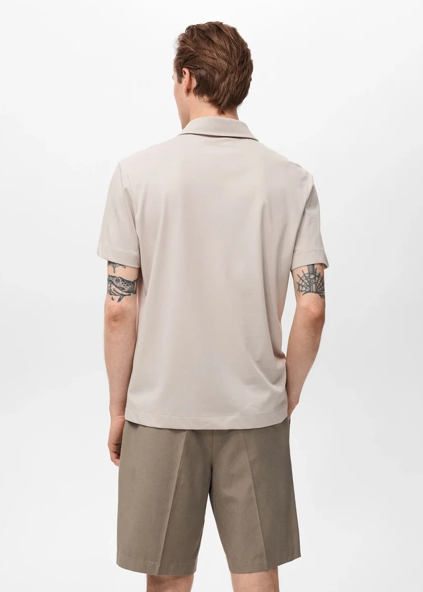 Il modello sabbia è un’esclusiva online. Tessuto in cotone. Collo polo con chiusura con zip. Silhouette dritta. Maniche corte. Orlo dritto.