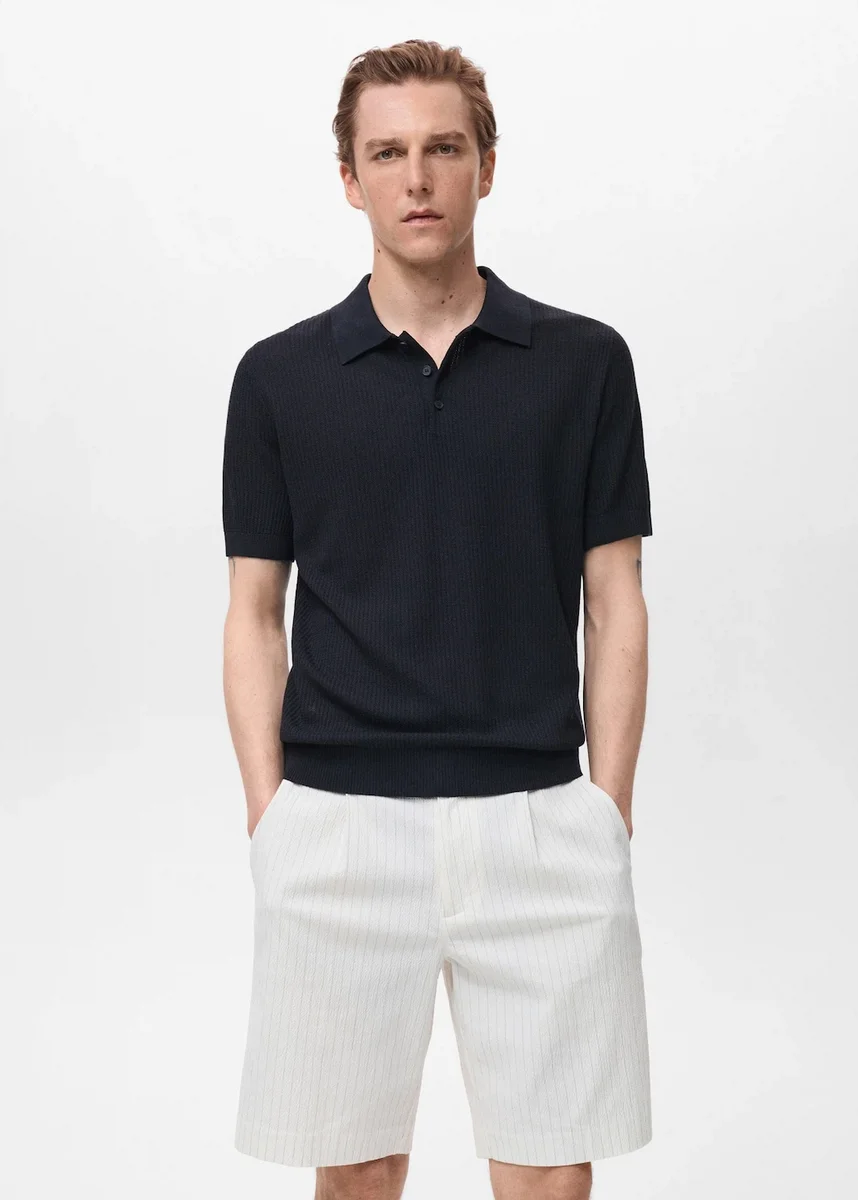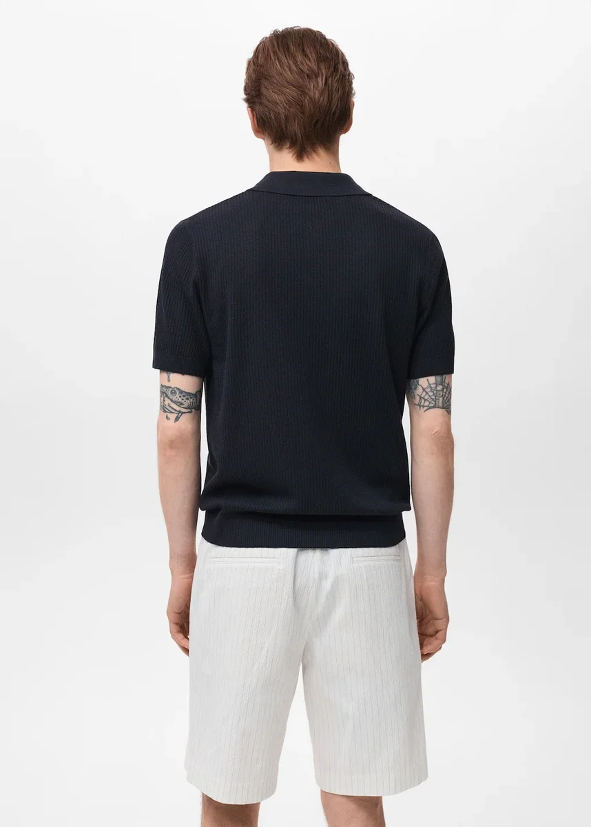 Tessuto in viscosa, lino e cotone. Maglia a costine. Collo polo. Maniche corte. Orlo dritto. Maniche non rifinite. Black Friday.