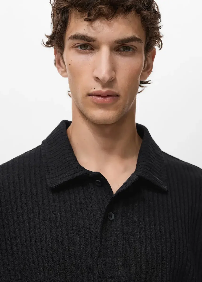 Tessuto misto cotone. Modello dritto. Collo polo con chiusura a bottoni. Maniche corte. Texture a righe. Orlo con spacchi laterali. Prodotto promozionale. Black Friday.