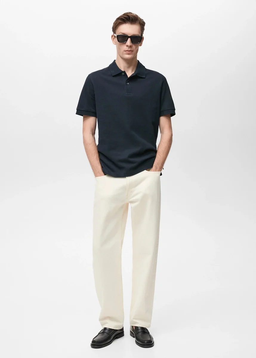 Vestibilità regolare. Tessuto 100% cotone. Tessuto piqué. Collo polo. Chiusura con bottoni. Maniche corte con finiture a costine. Orlo dritto con spacchi laterali. Maniche corte con polsini a costine