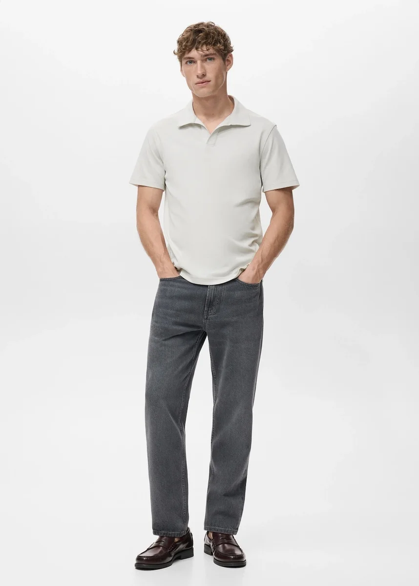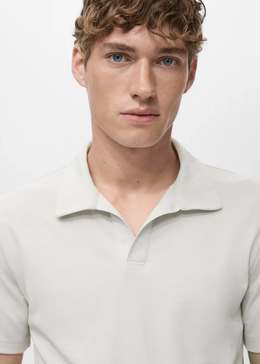Tessuto misto cotone. Maniche corte. Polo con colletto senza bottoni. Orlo dritto.