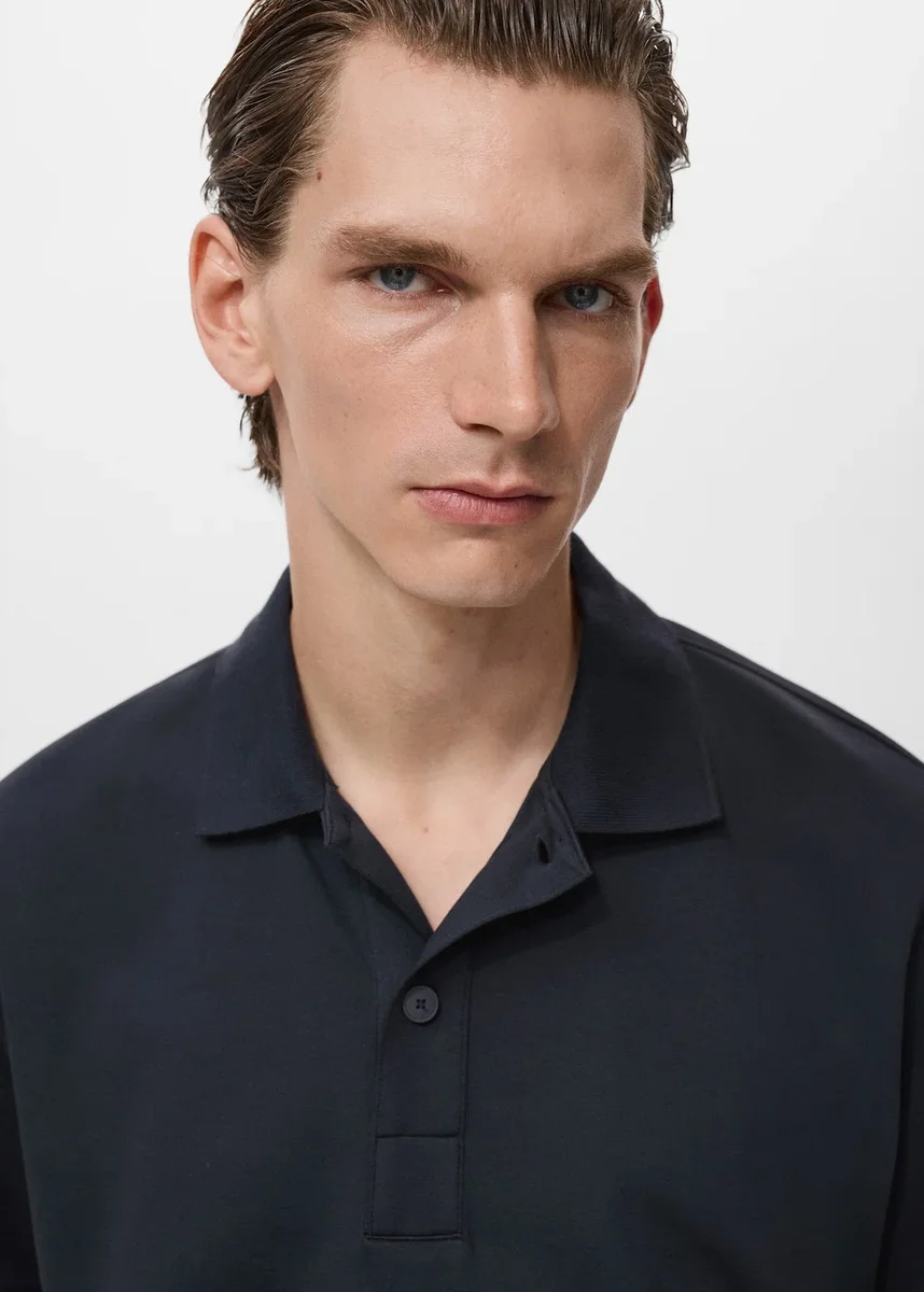 Tessuto misto cotone. Vestibilità morbida. Collo polo con chiusura a bottoni. Maniche corte. Orlo dritto. Prodotto promozionale.