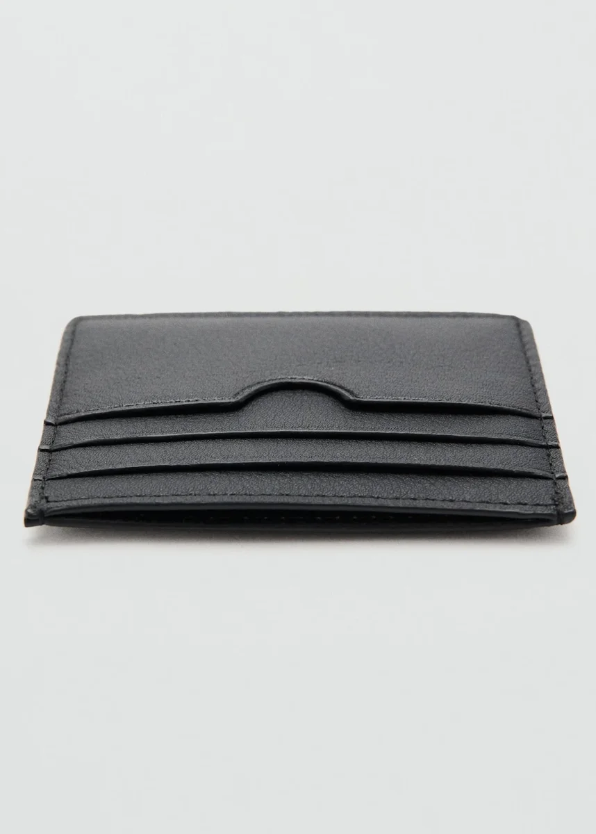 Effetto pelle martellata. Scomparto centrale per banconote. Sei fessure per carte su un lato.