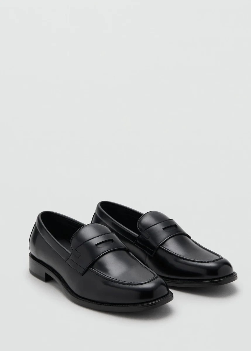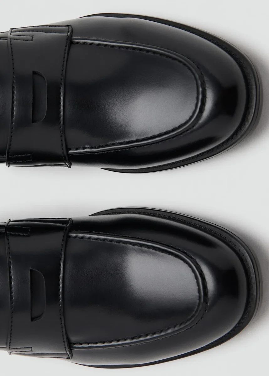 Similpelle nappa. Dettaglio maschera sulla tomaia. Cuciture decorative sul retro. Forma classica dall’aspetto allungato. Suola in tinta