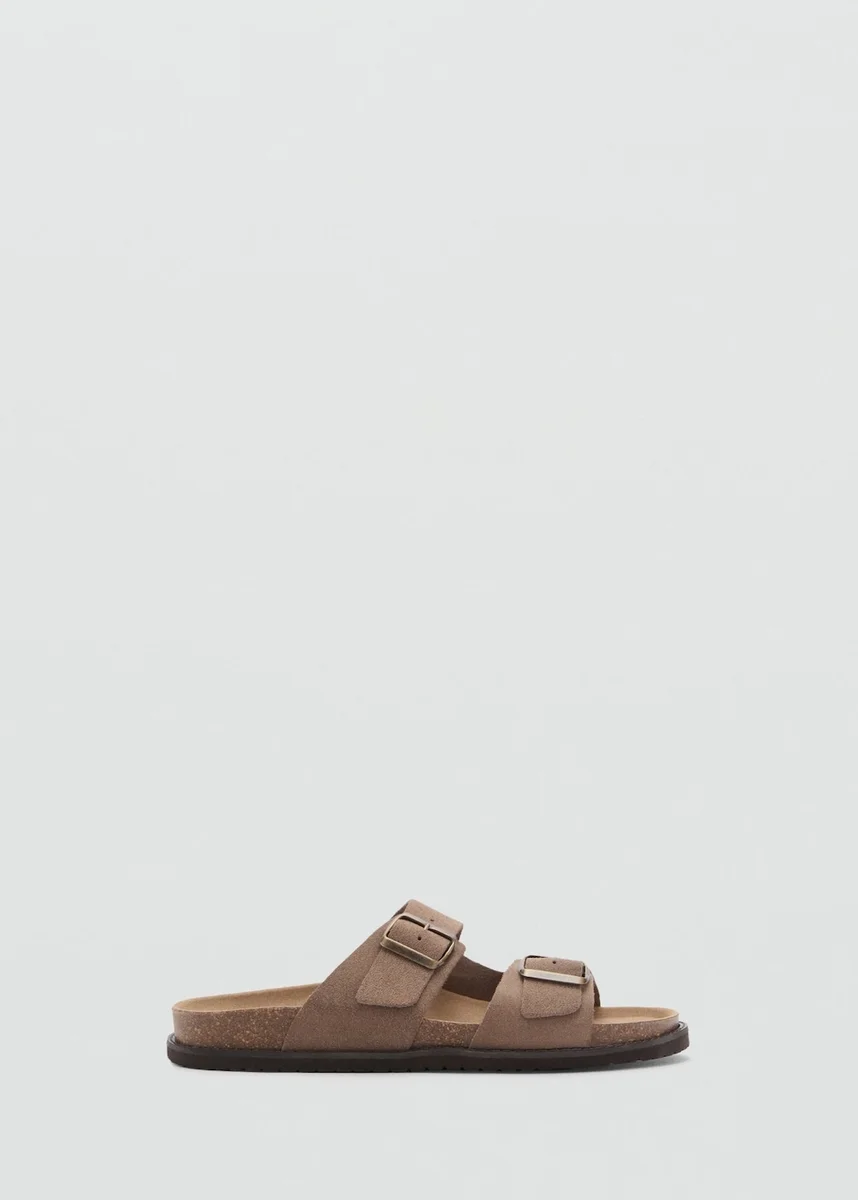 100% pelle scamosciata. Design con cinturini. Fibbie regolabili. Soletta in pelle. Suola dentellata. 100% pelle bovina. Cinturino doppio sul collo del piede con chiusura con fibbia in metallo. Suola voluminosa. Prodotto in promozione.