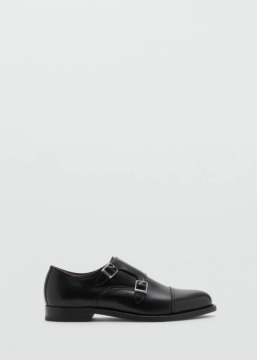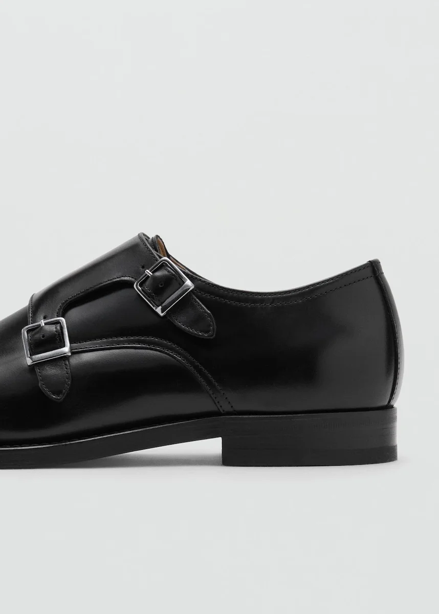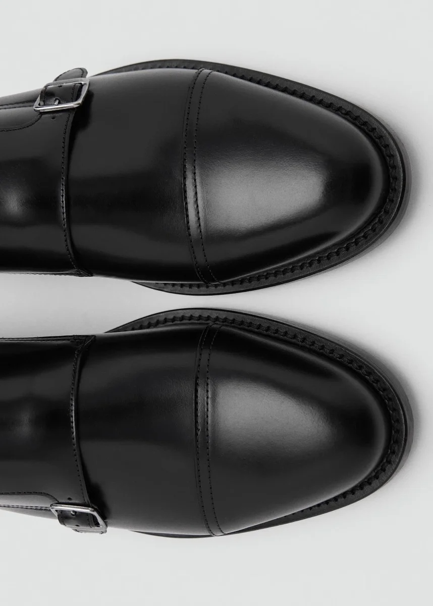 100% pelle nappa. Chiusura con doppia fibbia. Dettagli cuciti a punto indietro. Punta arrotondata.
