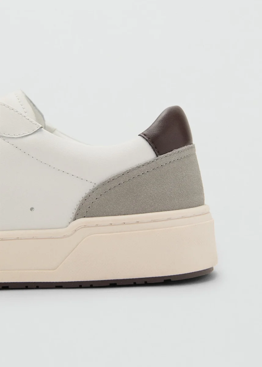Tomaia in pelle. Combinata con applicazioni in pelle scamosciata a contrasto. Punta arrotondata. Dettagli cuciti sul retro. Chiusura con lacci. Suola voluminosa in gomma a contrasto. Dettagli in ecopelle nappa
