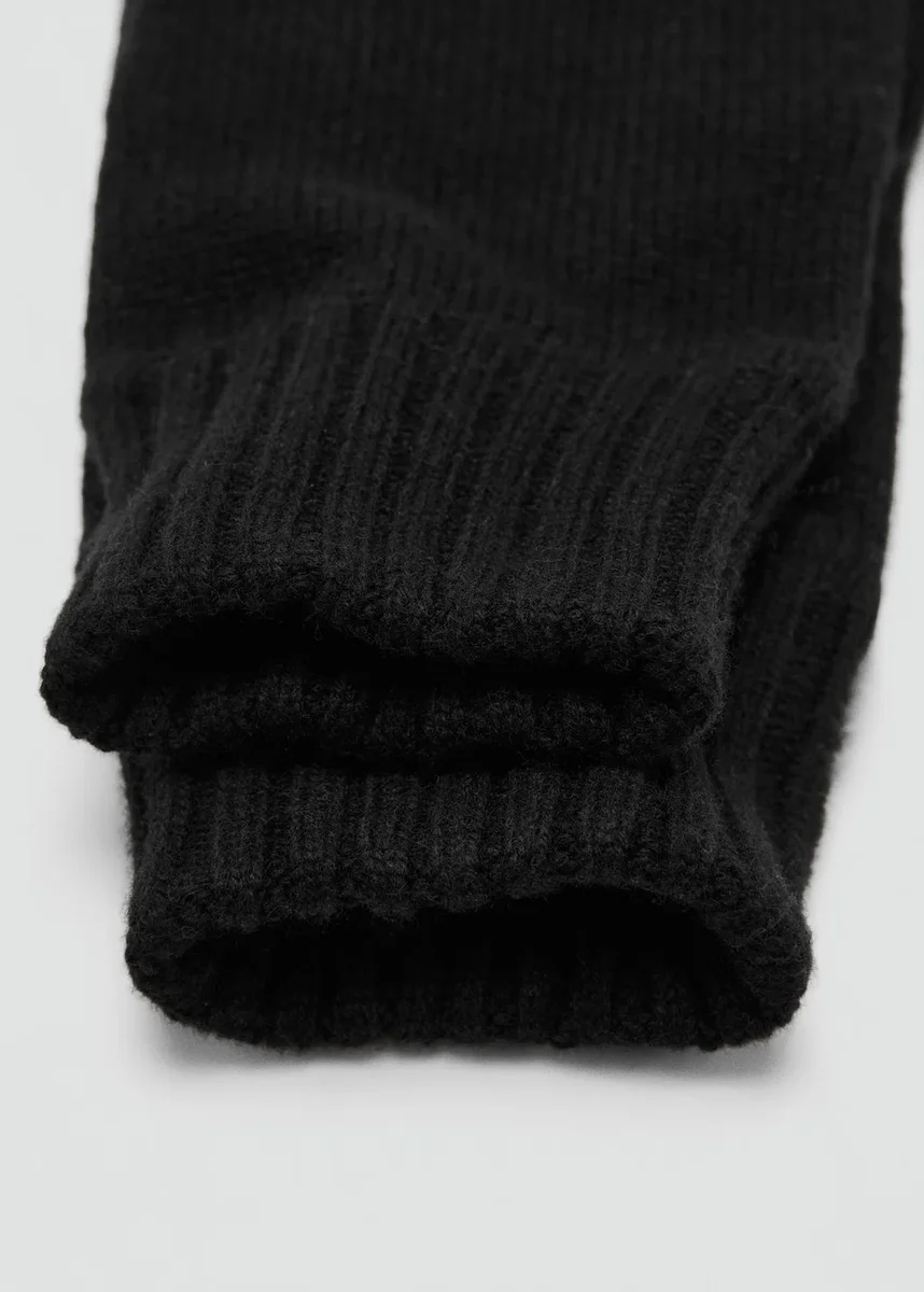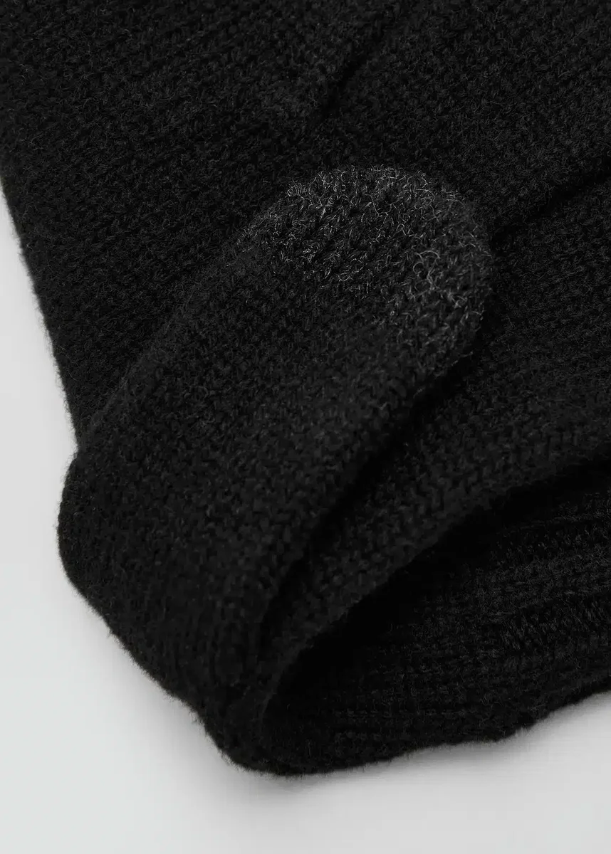 Tessuto misto lana. Tessuto a maglia. Finitura a treccia. Dettaglio bicolore sulla punta delle dita.