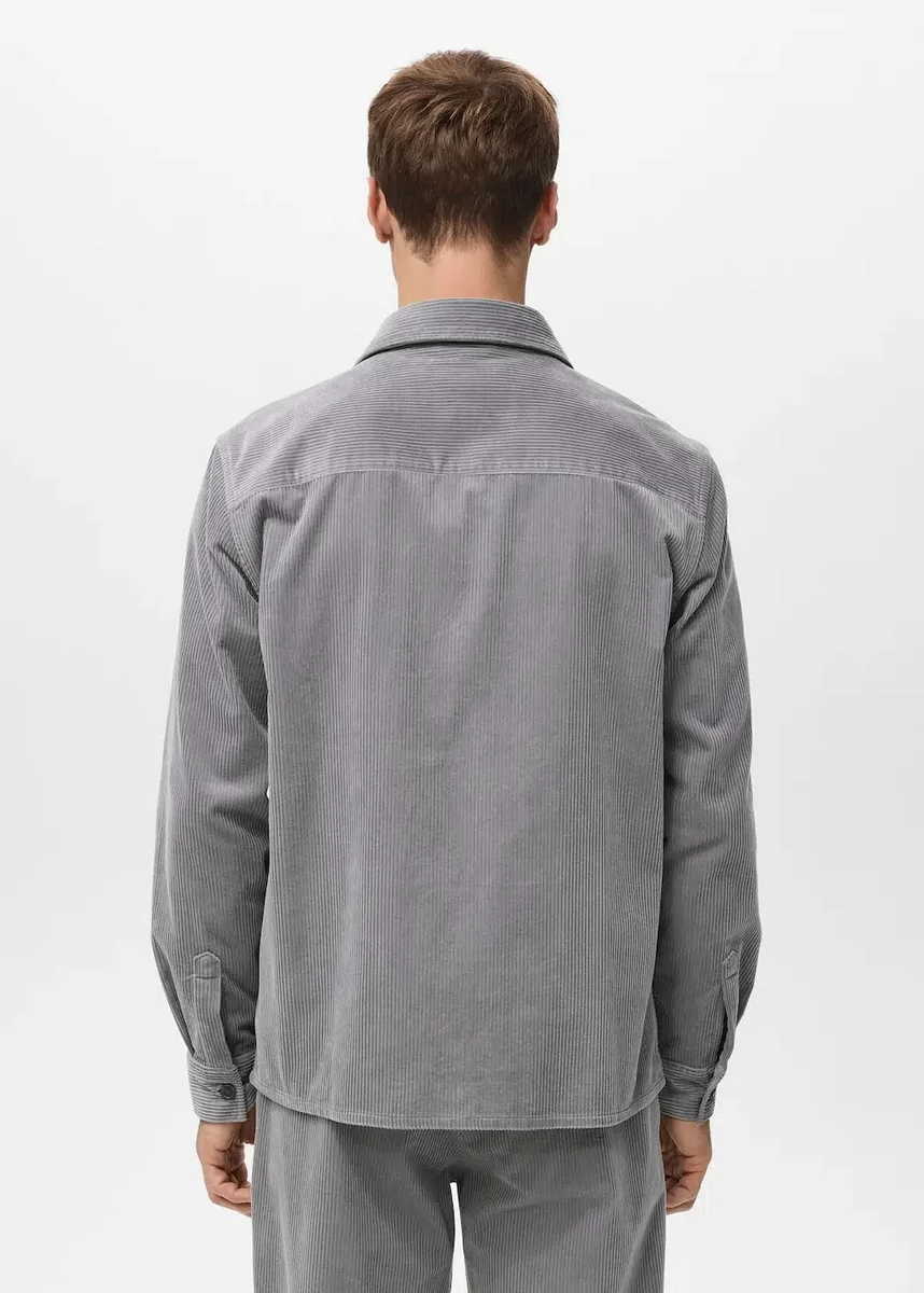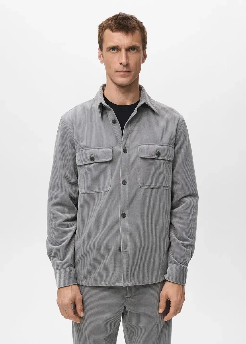 Vestibilità regolare. Tessuto 100% cotone. Tessuto velluto a coste. Collo camicia. Due tasche applicate con patta e bottone sul petto. Maniche lunghe con polsini abbottonati. Chiusura frontale con bottoni.