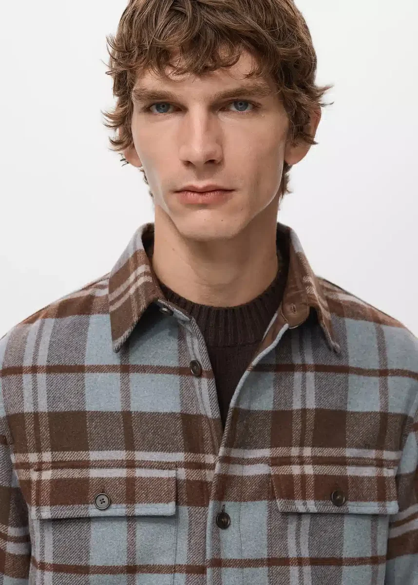 Vestibilità regolare. Tessuto misto lana. Motivo a quadri. Colletto camicia. Due tasche sul petto con patta e due bottoni. Maniche lunghe con polsini abbottonati. Chiusura frontale con bottoni