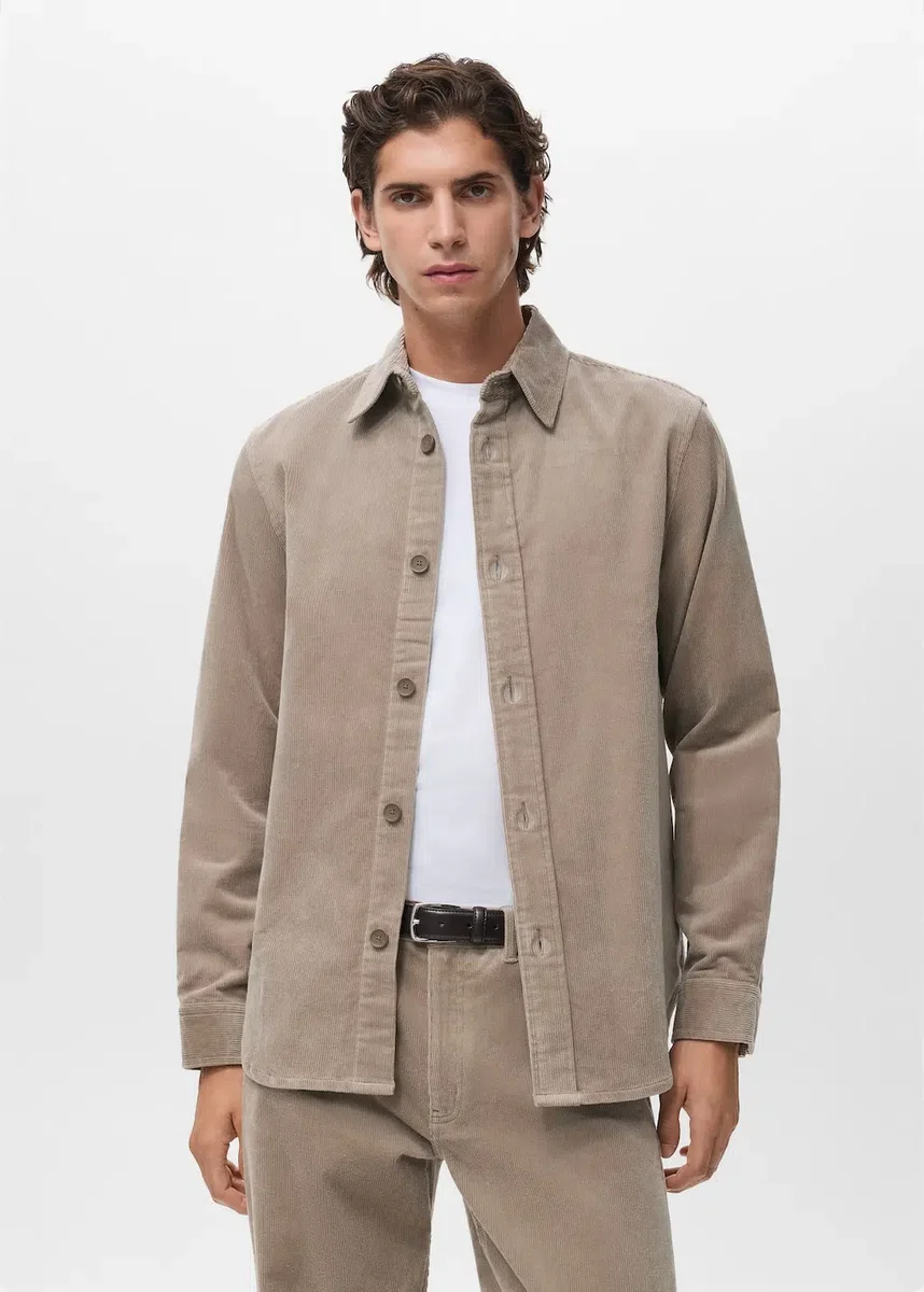 Tessuto in velluto a coste. Tessuto misto cotone. Il colore verde è un’esclusiva online. Oversize. Collo classico. Maniche lunghe. Chiusura con bottoni. Chiusura frontale. Black Friday.
