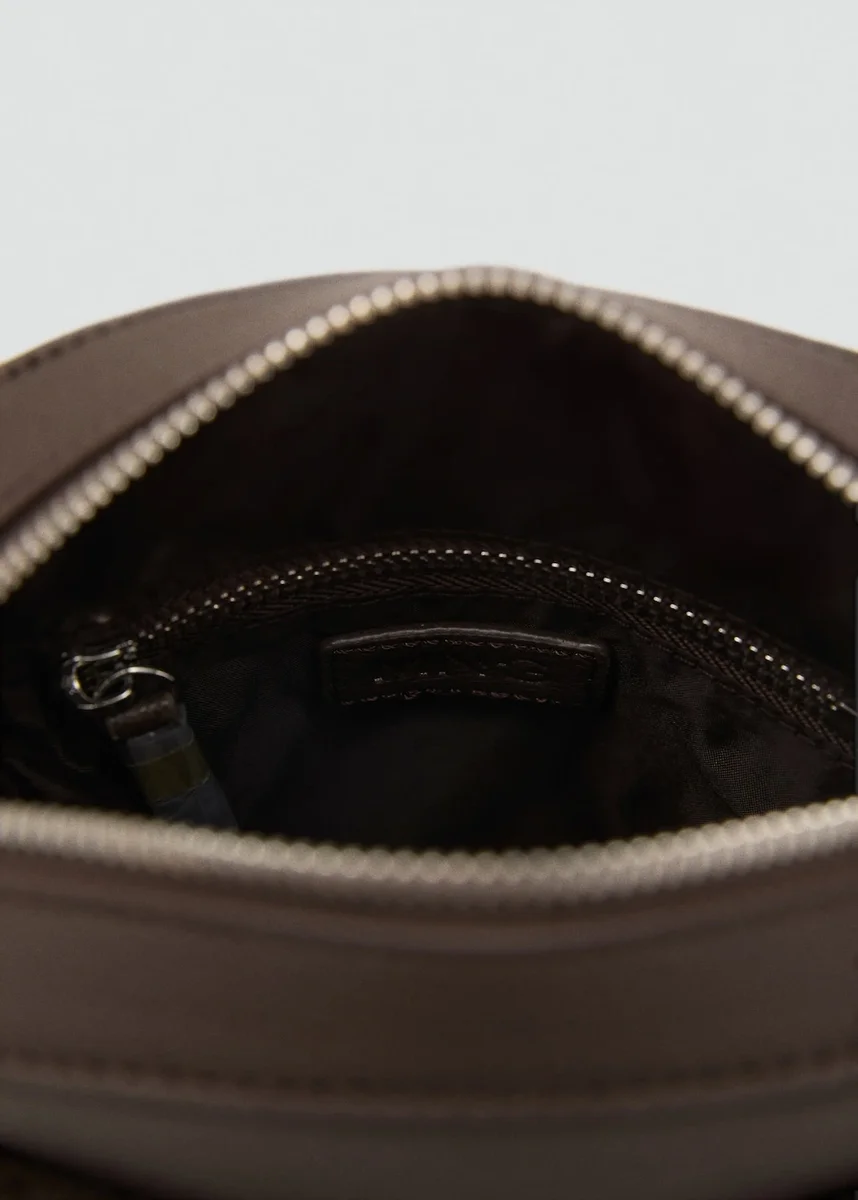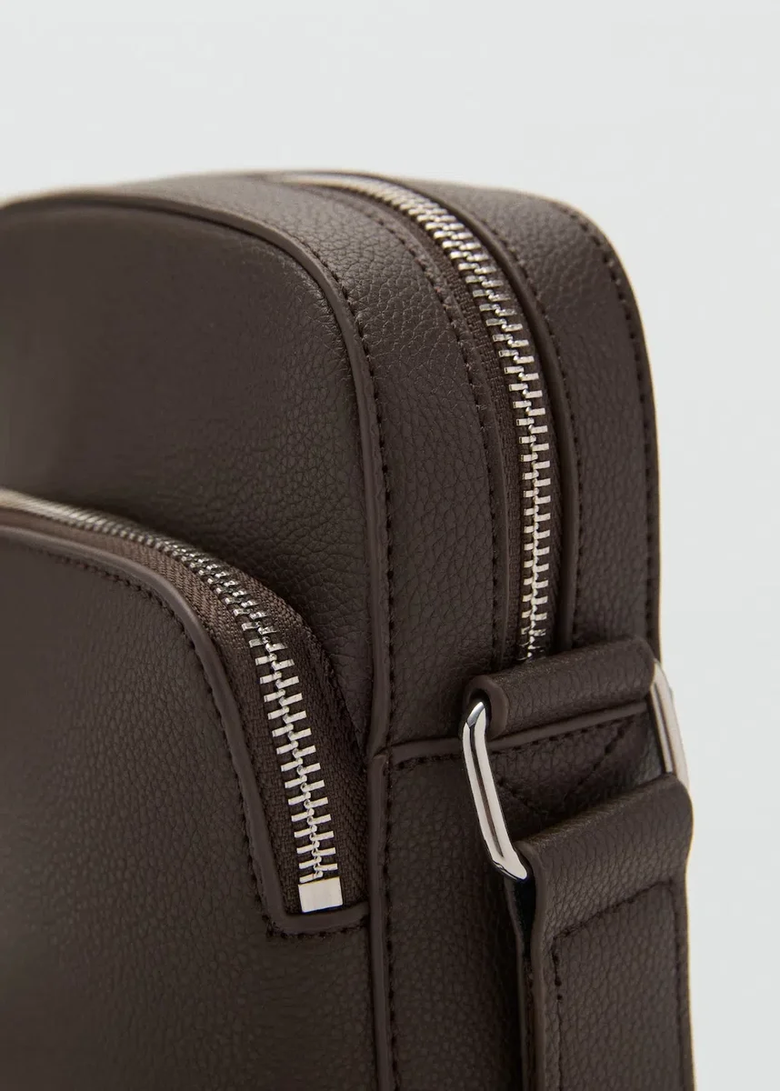 Effetto pelle martellata. Tracolla lunga regolabile. Scomparto principale con chiusura zip. Tasca laterale con chiusura zip. Tasche interne.