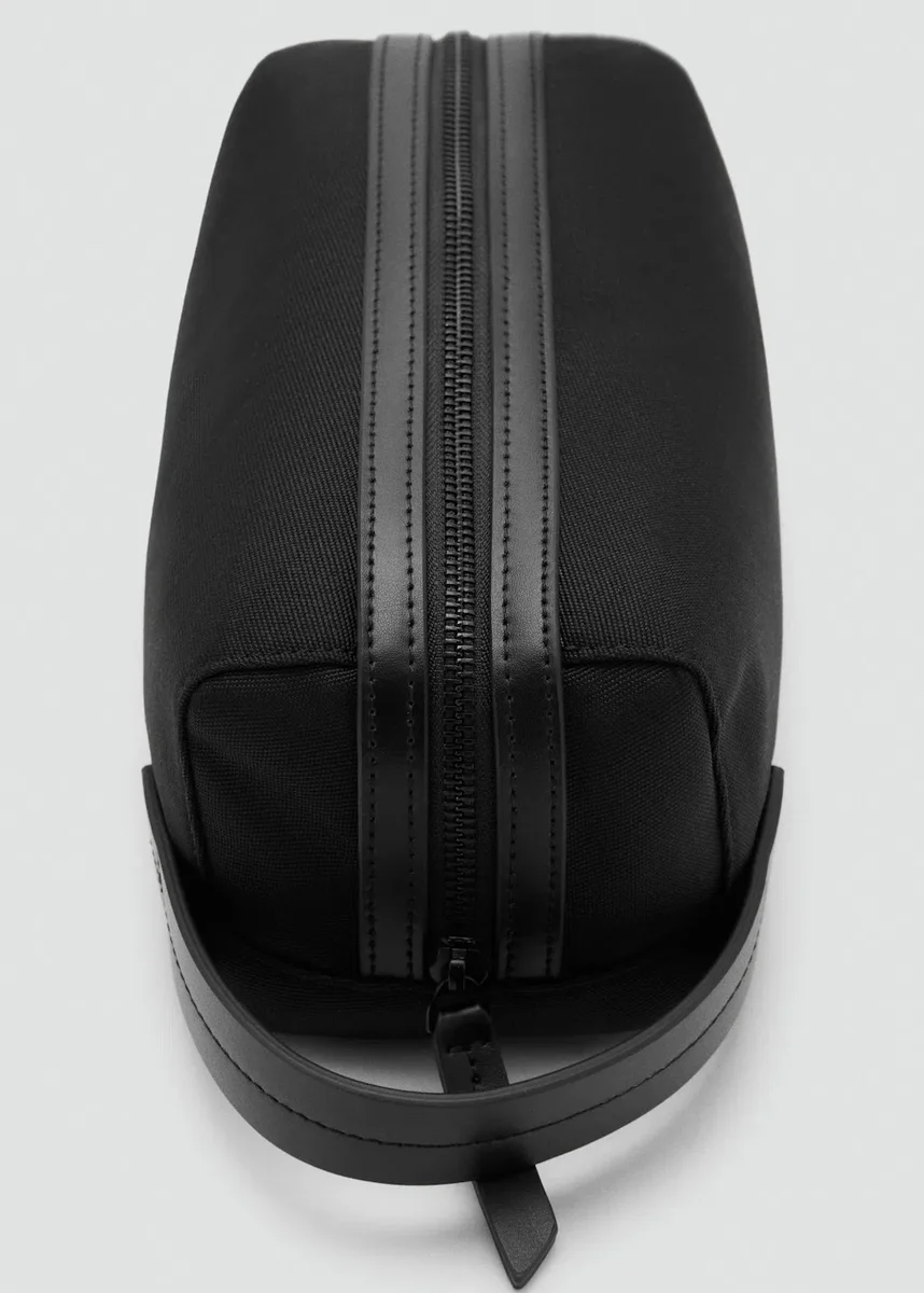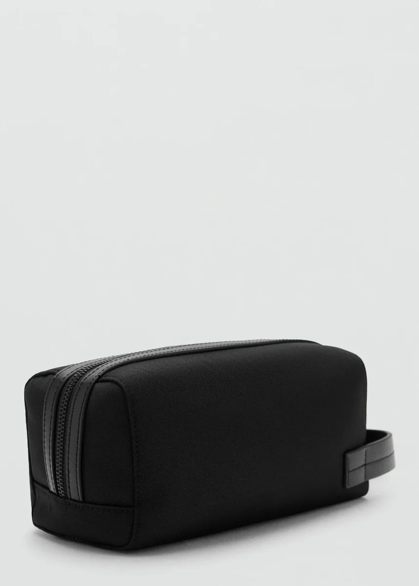 Dettagli in pelle. Chiusura con cerniera. Tasca interna con chiusura con cerniera. Manico corto laterale. 22 x 11 x 11 cm (lunghezza x altezza x larghezza)